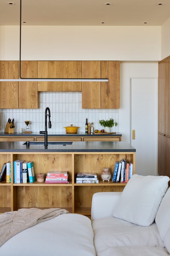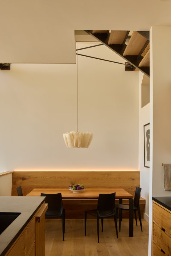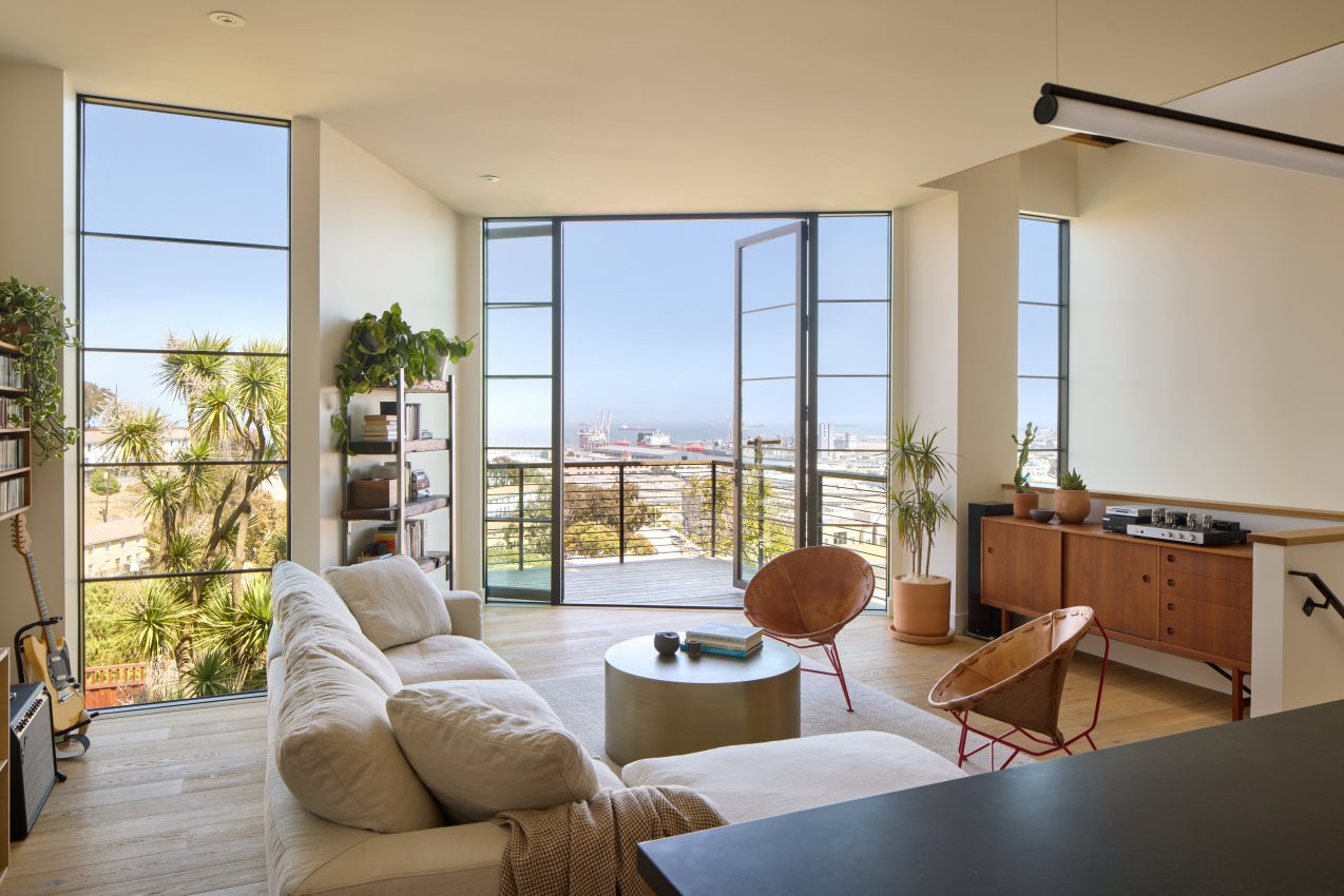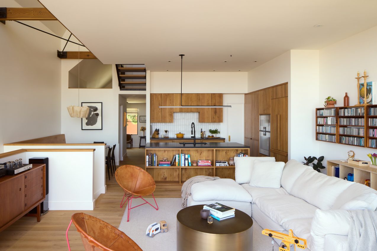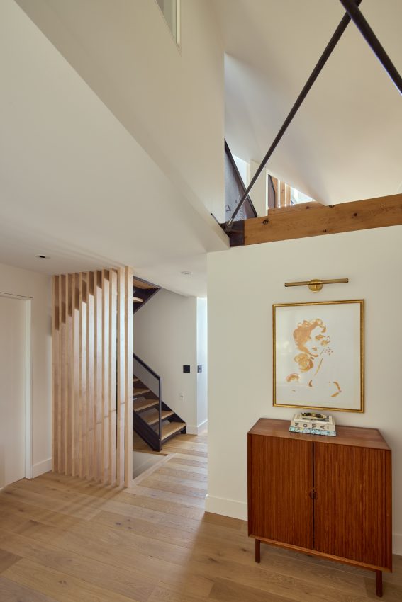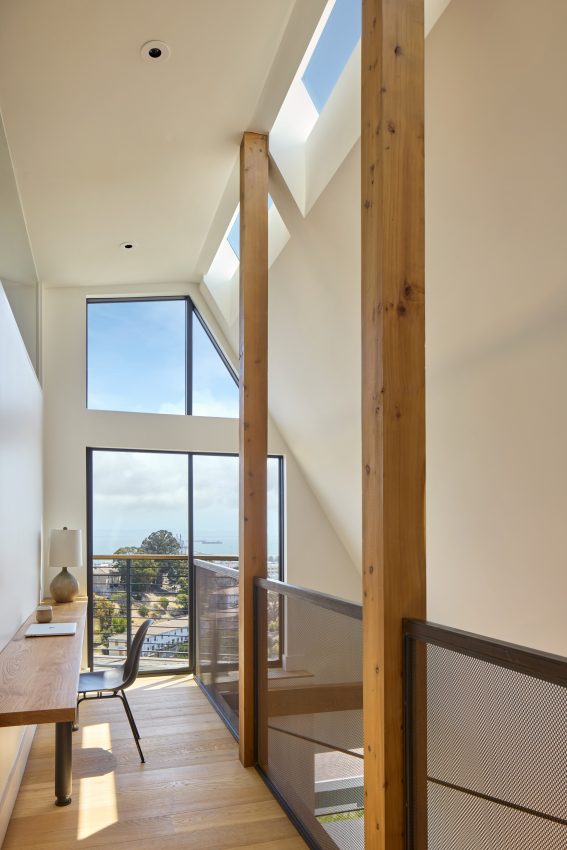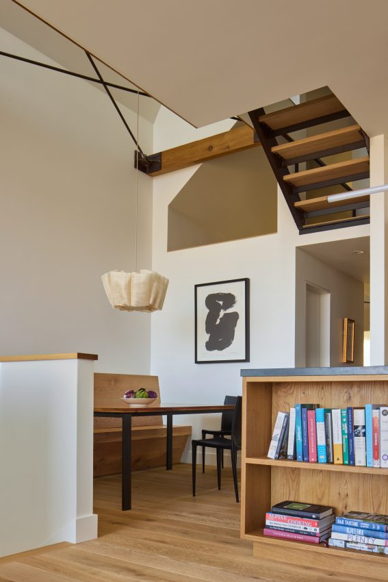 The design concept for this project references the historic pier on the SF waterfront where the clients were married. They asked us to design a playfully interactive space that emphasized verticality. They also wanted to incorporate exposed structure and tactile materials into a minimalist setting.