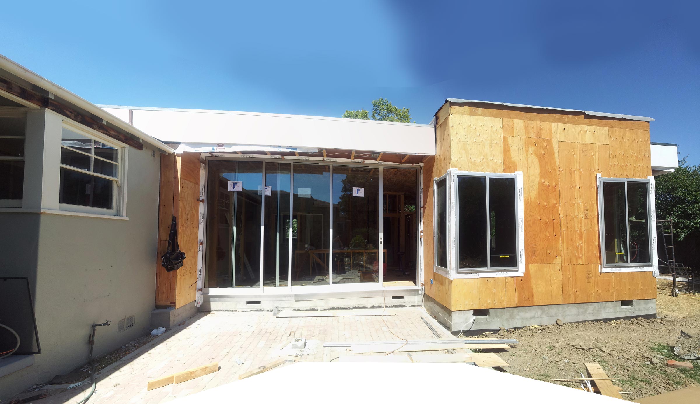 Here we added minimally, 150 square feet, almost all glass, and a new deck directly in front for the best vantage up and down the beach. New living space is under a 10-foot ceiling with natural light from 4 sides via clerestories. They define the rooms, and even the light-reducing ocean glare. A small sitting area and the kitchen at the back are cozy, under the original ceilings. Finally, we suspended a deck off the back wall to support a ladder to the roof to service the solar panels and to get a bigger view, make a better call on the waves.